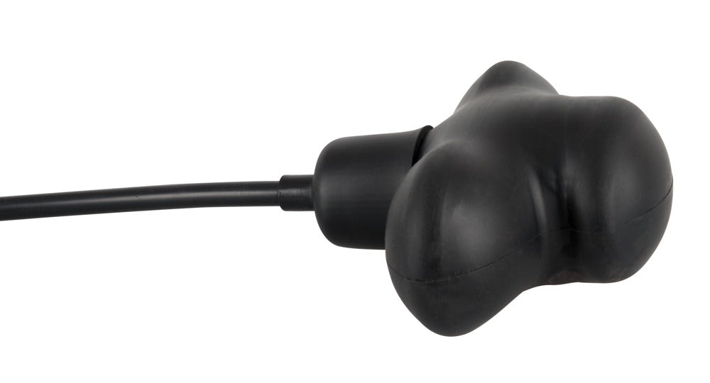 Oppblåsbar gag med pumpeball. Ca. 12 x 5,5 cm. Svart. Materiale gag: silikon. Materiale pumpeball: latex laget av naturlig gummilatex som kan forårsake allergier.