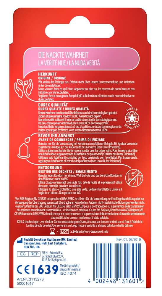 Konturert, flortynt og gjennomsiktig Durex følelsesekte ekstra stort kondom av naturkautsjuklateks. Dette er for tida markedets største kondom og har Easy-On passform som gjør at de sitter bedre og er enkle å rulle på. Med silikonbasert fuktskikt og sædbeholder.
