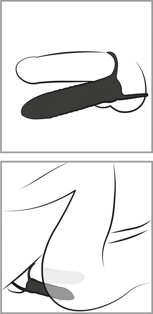 Penis- og pungring med bøyelig og rillet analdildo. Gir langvarig ereksjon grunnet blodoppdemmingseffekten og gir mulighet for dobbelpenetrasjon. Smalnende tupp.