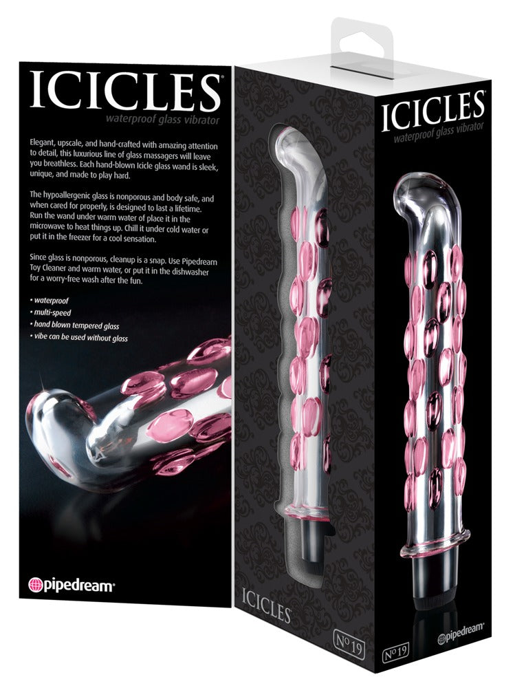Glass Dildo Icicles tilbyr en verden av sensuell utforskning. De utsøkte rillene og kantene langs skaftet legger til et ekstra lag av spenning, og hver bevegelse blir til et pirrende eventyr. Utforsk dine innerste ønsker og la Icicles ta deg med på en reise i nytelse. Det glatte og holdbare glassmaterialet sikrer en enkel og behagelig penetrasjon, og lar deg nyte varme eller kalde temperaturer for en ekstra pirrende opplevelse.