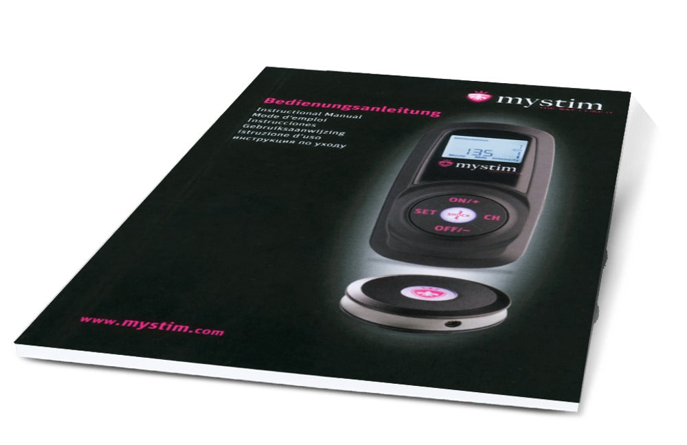 Mystim Cluster Buster kommer i en vakker oppbevaringsboks. En fjernkontroll, en mottaker, en bi-polær elektrode (selvheftende) og en bruksanvisning er inkludert i leveransen. Litium-ion-batteriet kan lades opp med den medfølgende kabelen.