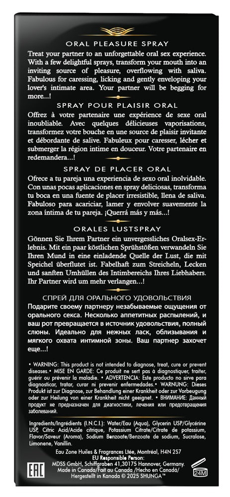 Waves of Pleasure vannmelon munnspray fra Shunga forvandler munnen og halsen til en fruktig kilde til nytelse for uforglemmelig oralsex. Den friske sommervannmelon-smaken er perfekt for lekne tungebevegelser, dype kyss og intime smakinger. Spray enkelt inn i munnen/halsen før oralsex.
